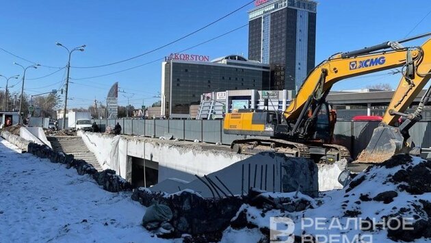 Рабочие расширили стройплощадку подземного перехода у парка Горького в Казани