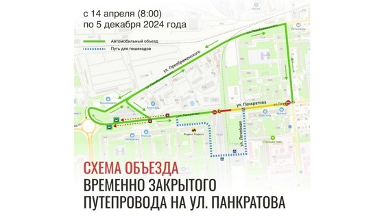В связи с закрытием путепровода на ул. Панкратова будет изменен маршрут движения автобусов № 16 и № 45. Их маршруты в указанный период будут проходить по улице Преображенского. Остановки «Ленинградское шоссе» на улице Панкратова в обоих направлениях будут перенесены в сторону Окружного шоссе к дому 4 в 1-м мкр-не ГПЗ-23.