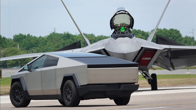 Серийный выпуск Tesla Cybertruck, начавшийся в 2023 году, стал одним из самых важных событий мировой автомобильной индустрии, а сам электрический пикап стал востребованной моделью для тестов у журналистов и блогеров. На сей раз эпатажный электромобиль поучаствовал в показательных заездах во время авиашоу в Орландо, где два пикапа бросили вызов лёгкому самолёту. Всё это проходило на фоне полётов малозаметного многоцелевого истребителя пятого поколения Lockheed Martin F-22 Raptor.