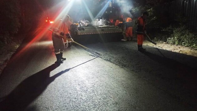 В ночь с пятницы на субботу на участке был уложен первый, выравнивающий слой асфальта. Далее по плану – поднятие на новый уровень дороги люков на сетях инженерных коммуникаций.
