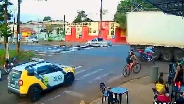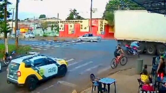 Мотоциклист, уходя от погони, чудом не залетел под фуру в Бразилии