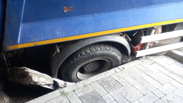 Как выяснилось, прошедшие в городе дожди размыли асфальт и бетон вокруг канализационного люка улице Советской, 49. В результате, тяжёлая машина оказалась одним колесом под землёй. При этом из-за узкого междворового проезда и нависающих деревьев к застрявшему мусоровозу не смог бы подъехать автокран.