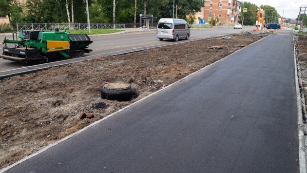 Укладка асфальта началась на пешеходных тротуарах на улице Гагарина в Кемерове