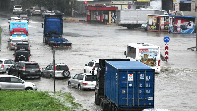 Тропические ливни во Владивостоке не прекращаются: водой смыло дорожное покрытие
