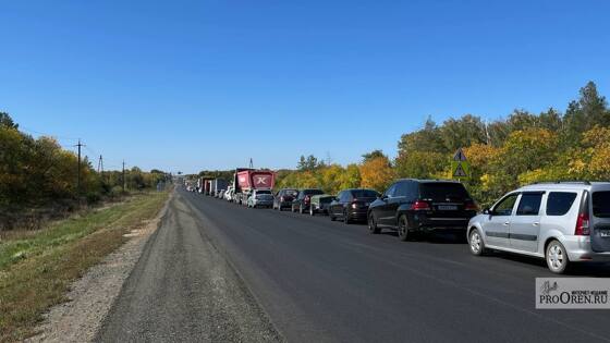 Последняя опрокинулась на проезжую часть. Из-за аварии образовалась огромная пробка. Наши читатели поделились кадрами с места событий. Как сообщают оренбуржцы, они стоят в пробке уже час.