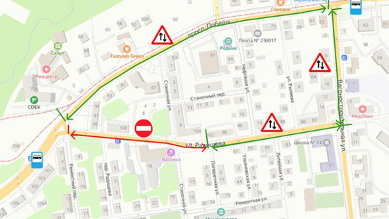 В Калининграде с 4 октября изменят схему движения на нескольких улицах из-за ремонта коллектора