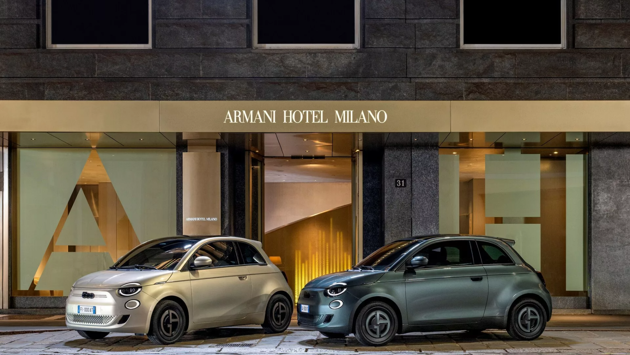 Салон получил отделку из дерева с лазерной резкой и сиденья с логотипом Giorgio Armani, который вторит дизайну колес. Рамка передней панели и круглая семидюймовая «приборка» отмечены подписью Армани. Также 500е оборудован 10,25-дюймовым дисплеем мультимедийной системы, панорамной крышей и аудиосистемой JBL с шестью динамиками.
