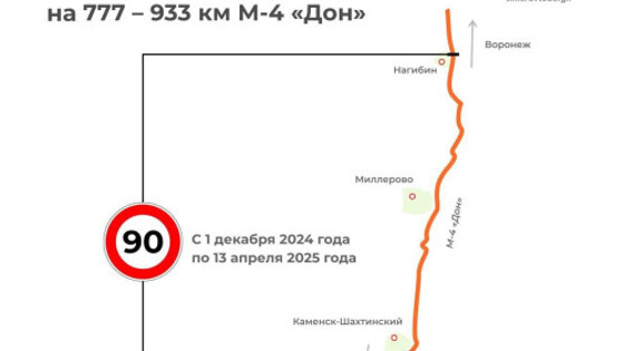 "Автодор» с 1 декабря вводит зимний скоростной режим на трассе М-4 «Дон» в Ростовской области. В летний период на участках с 777 по 933 км и с 1091 по 1119 км автодороги действовал повышенный скоростной режим движения. С 1 декабря максимальная разрешенная скорость на этих участках составит 90 км ч», говорится в сообщении пресс-службы «Автодора». Такая мера поможет обеспечить безопасность дорожного движения и снизить риск возникновения ДТП в сложных погодных условиях. В апреле повышенный скоростной режим будет восстановлен, уточнили в компании.