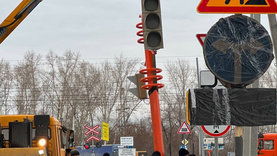 В Заводском районе Кемерова начали устанавливать светофоры в связи со скорым перекрытием моста.