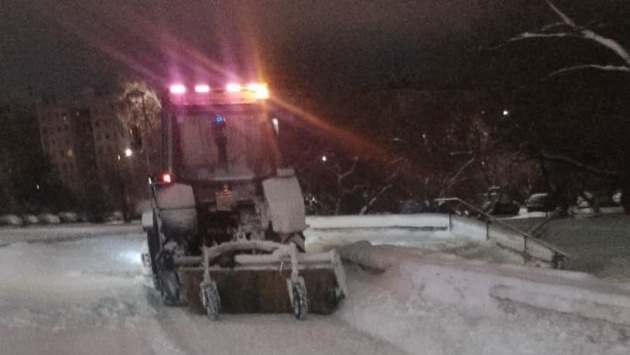 В ночь с 16 на 17 декабря сотрудники коммунальных предприятий с помощью спецтехники убирали магистрали от снега, расширяли обочины и ликвидировали снежную колею.