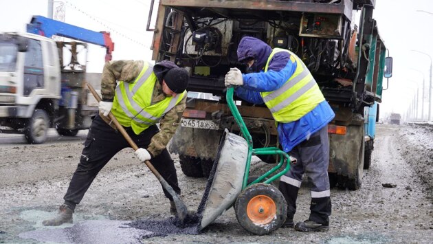 «Ямы заделывают литой асфальтобетонной смесью, температура которой достигает 200 градусов, благодаря чему скопившаяся в яме влага испаряется. Такой вид ремонта позволяет привести участки дорог в нормативное состояние до наступления устойчивых плюсовых температур», - подчеркнули в мэрии.