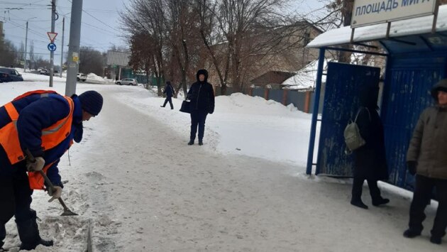 Сегодня днем работы продолжаются. Коммунальщики обрабатывают тротуары, пешеходные дорожки и остановки специальной противогололедной смесью. Работы проводятся в частном секторе, парках и скверах.