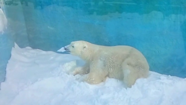 В хабаровском зоосаде показали, как радуется снегу белый медведь