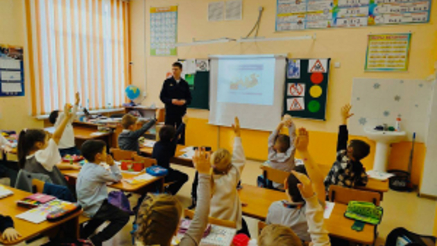 В Новокуйбышевске с целью предупреждения детского дорожно-транспортного травматизма и обеспечения дорожной безопасности несовершеннолетних старший госавтоинспектор дорожного надзора отдела Госавтоинспекции сержант полиции Андрей Ломовцев провел для учеников младших классов интерактивную викторину, направленную на повышение знаний учащихся о Правилах дорожного движения. В игровой форме детям напомнили правила безопасного перехода проезжей части и рассказали о назначении светоотражающих элементов. Госавтоинспектор пояснил, что в темное время суток и в условиях недостаточной видимости необходимо обязательно использовать световозвращающие элементы, которые повышают видимость пешеходов на недостаточно освещенной дороге и значительно снижают риск возникновения дорожно-транспортных происшествий с их участием. Андрей Анатольевич вместе с ребятами повторил безопасные маршруты до школы и разобрал улицы и перекрестки, где дети должны быть максимально внимательны, напомнив о необходимости неукоснительного соблюдения Правил дорожного движения. Дети с энтузиазмом участвовали в беседе и в завершение мероприятия поблагодарили полицейского за интересную и полезную информацию.