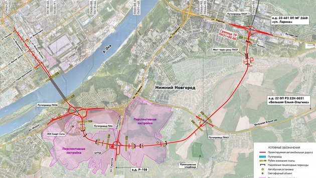 Ежеднево на строительстве заняты 135 человек из четырех субподрядных организаций. Работы выполняются в соответствии с графиком. Что касается новых автомобильных развязок, в ГУАД напомнили, что они появятся на улице Ларина и автомобильных дорогах Большая Ельня — Ольгино и Р-158 Нижний Новгород — Саратов. Кроме того, разработана проектная документация на новый мост через Оку. В данный момент правительством Нижегородской области прорабатывается вопрос о получении федерального финансирования на этот объект.