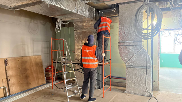 На объекте находятся 95 человек. Они монтируют оконные блоки, устраивают внутренние перегородки и слаботочные системы, монтируют инженерные системы, укладывают плитку, штукатурят стены, проводят электромонтаж, устраивают гидроизоляцию пола. Работы ведутся в соответствии с графиком, рассказали в Минстройкомплекса Подмосковья.