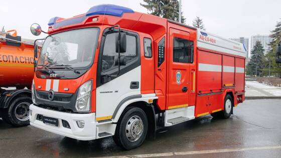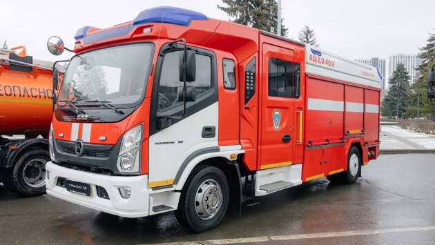 На шасси грузовика «Валдай 12» создан новый пожарный автомобиль. Кабина автомобиля соединена со специальной надстройкой, которая позволяет пожарным свободно передвигаться внутри салона: надстройка вмещает 5 человек боевого расчета, притом — в полной амуниции.