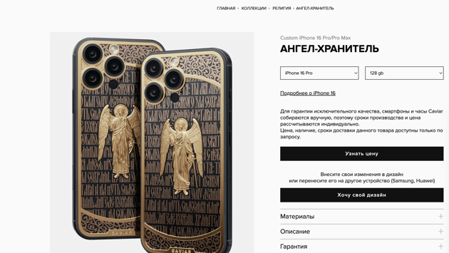 Российский люксовый бренд выпустил смартфон модели «Ангел-Хранитель» с соответствующим дизайном и духовным посылом. Стоит он 600 тысяч рублей. По желанию клиента, в основу такого проекта могут лечь смартфоны от Samsung, Apple и Huawei.