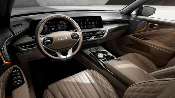 Длина Kia K8 превышает 5 метров, оснащение богатое. У автомобиля есть трехзонный климат-контроль, адаптивный круиз-контроль, сиденья с подогревом, вентиляцией, массажем, 10 подушек безопасности в базовой комплектации.