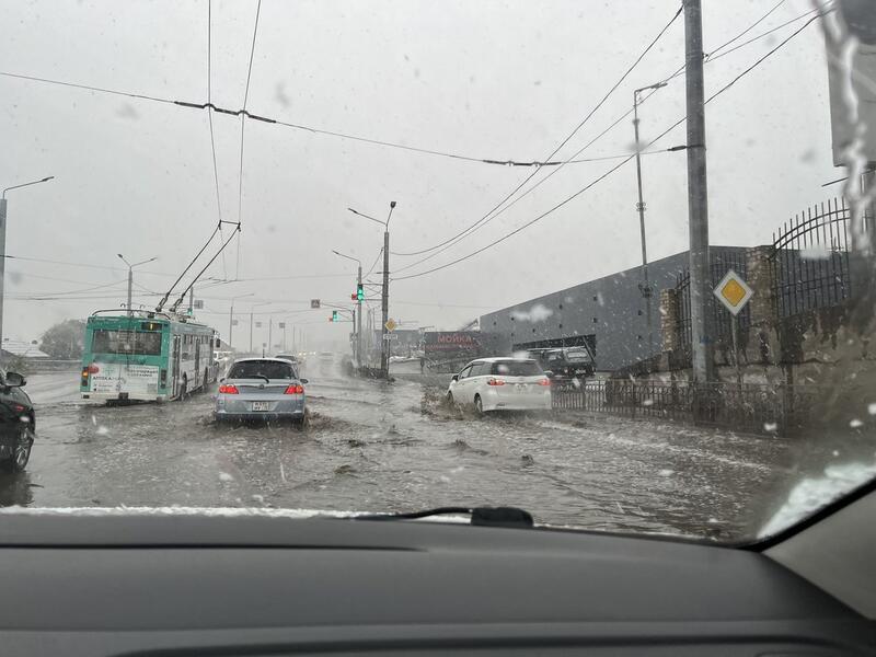 «Это не лужа, а почти озеро, я бы сказал. Ещё чуть-чуть пойдет снег и растает — проезжать можно будет только вплавь, наверное. Все и так стараются эту лужу объехать, как могут», — уточнил очевидец.