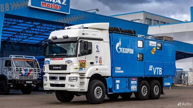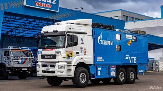 В продаже появился мобильный штаб гоночной команды «КАМАЗ-мастер». Машина оснащена 13-литровым дизельным двигателем Cummins QSZ мощностью 635 л.с. Изначально уникальная машина, на создание которой инженеры спортивного коллектива потратили более полугода, была оснащена кабиной К3, но когда челнинский гигант начал выпуск грузовиков поколения К4, кабинный модуль заменили более современным.
