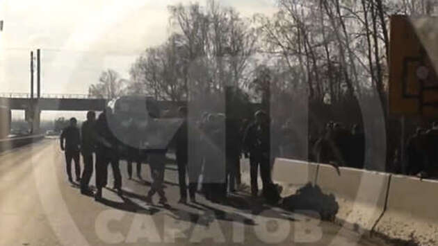 Футбольные фанаты устроили массовую драку на проезжей части при въезде в Саратов, сообщает Telegram-канал "ЧП Саратов" и публикует видеозапись инцидента. "На трассе на въезде в город фанаты устроили драку прямо на дороге, тем самым затруднили движение остальным автомобилям", - отмечается в сообщении. На кадрах видно, что на обочине дороги припаркован автобус. Рядом происходит потасовка с участием нескольких десятков человек. Несколько дерущихся вышли на проезжую часть, перекрыв проезд для автомобилей. О причинах драки не сообщается. До этого в Ленинградской области пассажир такси отнял у водителя личные вещи, угрожая ножом. Нападавший скрылся в подъезде ближайшего дома, его вычислили и задержали полицейские.