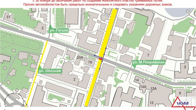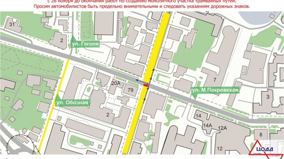 Они связаны с сооружением монолитных участков трамвайных путей и будут действовать до окончания работ. Как пояснили в ООО «Экологические проекты», движение по улице Ильинской будет разрешено только от улицы Максима Горького в направлении улицы Маслякова. Левый поворот на Малую Покровскую сохранится, но будет временно сужен.