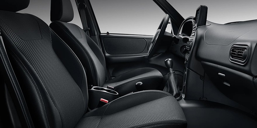 Топовой версией является Techno, за неё просят 1 760 000 рублей. У такого внедорожника 17-дюймовые литые диски, светодиодные противотуманки, кожух запасного колеса, корпуса зеркал и дверные ручки, окрашенные в цвет кузова, тонировка задних стёкол, обогрев лобового стекла, кресло водителя с регулировкой по высоте и поясничной поддержкой, салон отделан тёмно-серой тканью.