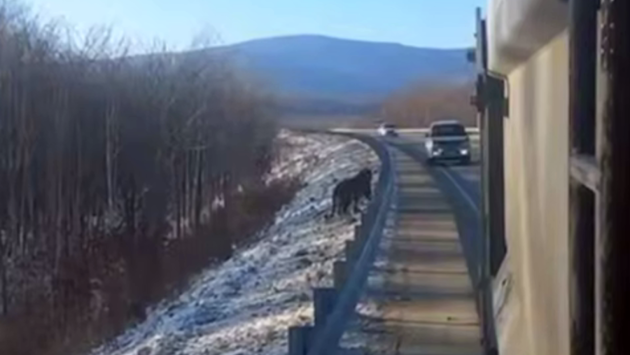 Водитель запечатлел инцидент на видео. На кадрах заметно, как хищник приближается к обочине дороги, но пугается проезжающего автомобиля и уходит в лес.
