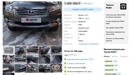В РФ сняли с хранения и выставили на продажу новый Toyota RAV4 2012 года выпуска