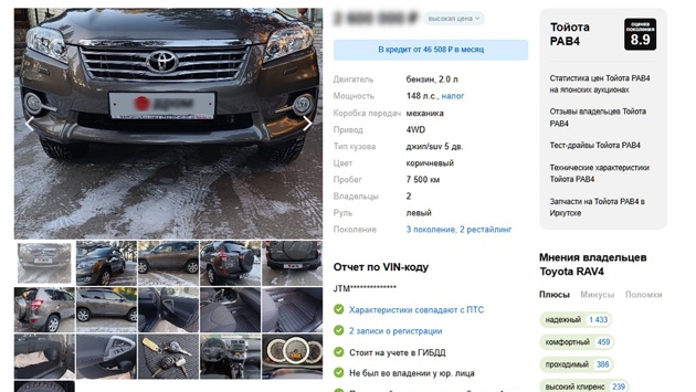 Как выяснила "Российская газета", в Иркутске появился в продаже Toyota RAV4 2012 года выпуска. Пробег автомобиля составляет всего 7500 км.