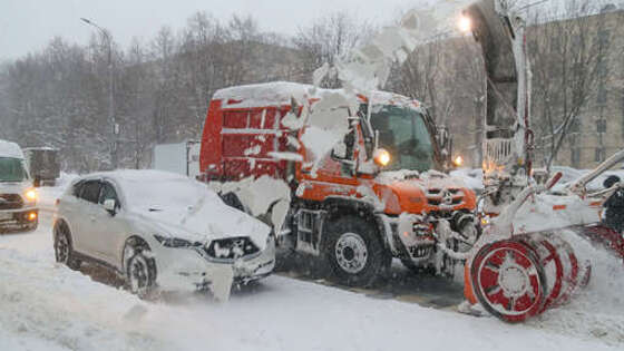 В Подмосковье колонна снегоуборщиков застряла в снегу и попала на видео