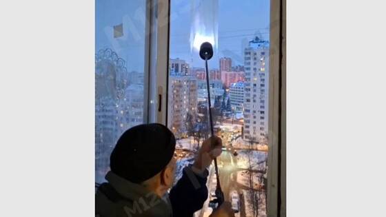На видео, снятом в Западном Дегунино, можно увидеть, как мужчина в шапке, держа зажженную кровельную горелку в руках, через открытое окно поднес ее к скоплению сосулек на крыше. В результате наледь стала таять и превратилась в стекающую на улицу воду.