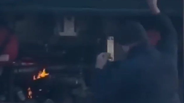 На опубликованных кадрах видно, как у стоящего на светофоре автобуса горит моторный отсек. Подоспевший водитель вскрыл его, достал горящий предмет и потушил его руками. После чего закрыл отсек и продолжил движение.
