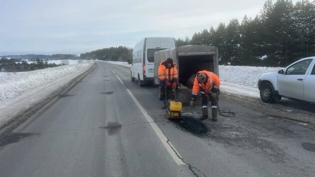 На трассах в Удмуртии проводят аварийный ремонт ям