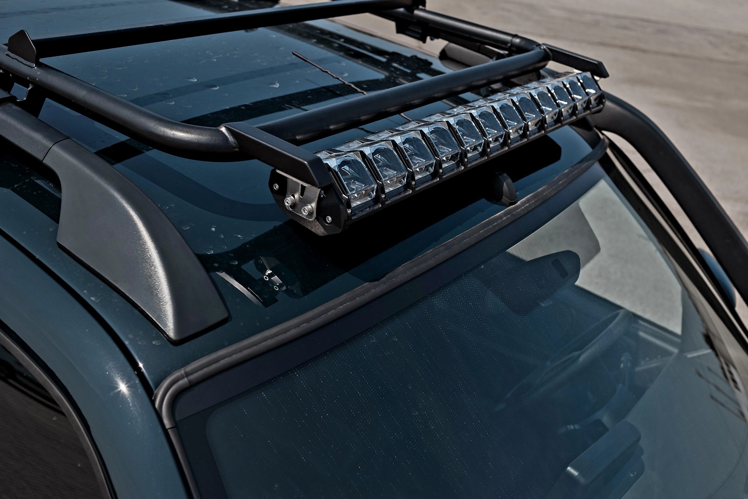 В запасном колесе установлен запирающийся органайзер, в котором предлагается хранить буксировочный трос. Ещё один важный элемент — световая балка на передней кромки крыши. Продолжают список лифт подвески, более тяговые главные пары и блокировки межколёсных дифференциалов.