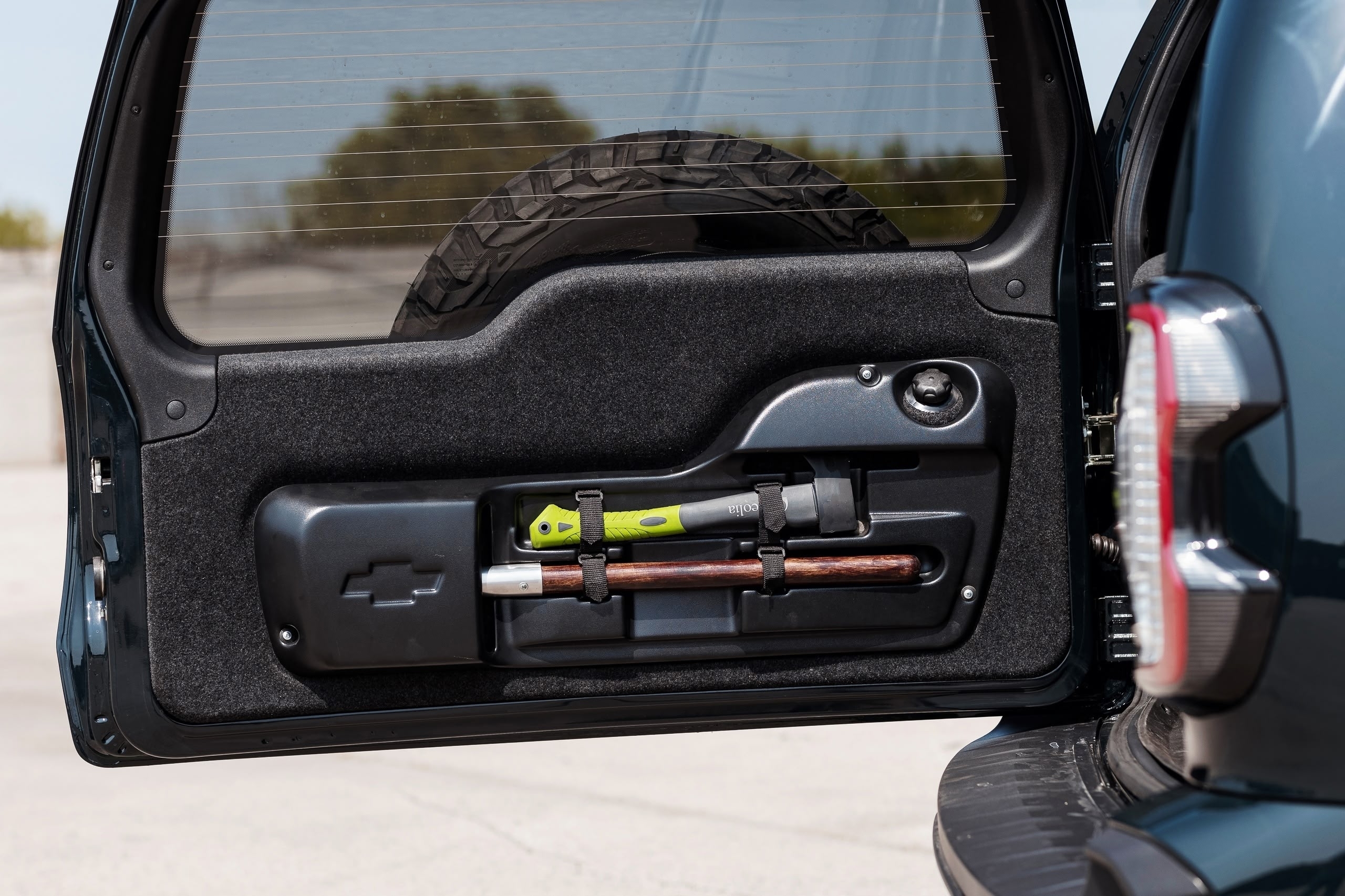 С внутренней стороны пятой двери смонтированы крепления, где можно разместить дополнительное оборудование вроде небольшого топора и сапёрной лопаты. Кроме того, в багажном отсеке предлагается натянуть сетку для перевозки домашних животных.