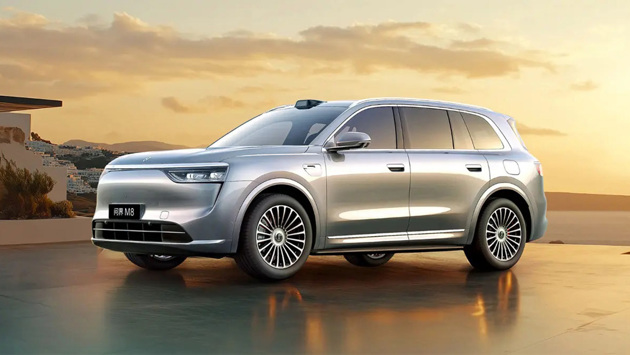 7-местный полноразмерный кроссовер Aito M8 имеет габариты 5190 x 1999 x 1795 мм при колёсной базе 3105 мм. Под капотом установлена 1,5-литровая бензиновая «турбочетвёрка», работающая в связке с двумя электромоторами. Суммарная мощность гибридной установки — 533 л.с., запас хода достигает 1526 км.