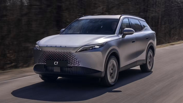 • Omoda С7: 1,6-литровый турбодвигатель на 150 л.с., 7-ступенчатый «робот», передний и полный привод. Скидка до 390 900 рублей;