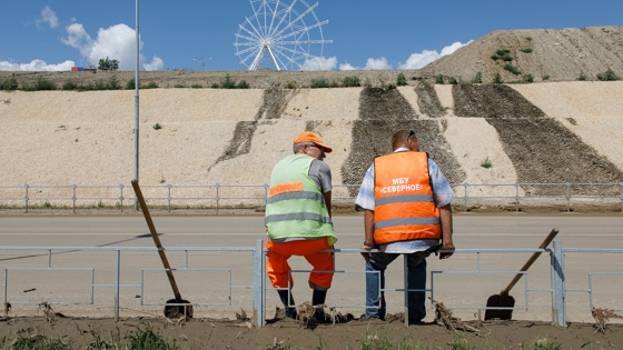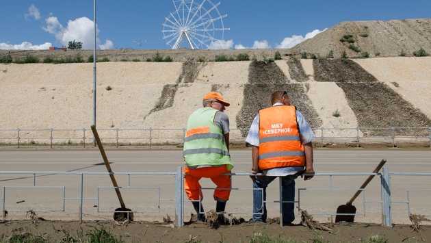 В Волгограде после снятия режима чрезвычайной ситуации не прекращаются работы по приведению в порядок рокадной дороги. Как рассказал V1.ru директор МБУ «Северное» Евгений Головко, несмотря на открытие движения автотранспорта на Нулевой Продольной, сотрудники муниципального предприятия ведут работы по очистке подножия «Волгоград Арены». Тонкий слой засохшей грязи приходится очищать в ручную на фоне недостроенного колеса обозрения - Работы на рокадной дороге ещё достаточно много. Она пока далеко не идеально чистая. Мы будем в ближайшие дни и дальше вычищать дорогу. Предстоит вымыть дорожное покрытие от оставшейся грязи. Наша задача привести её в порядок. Проведение восстановительных работ смотрите в фоторепортаже V1.ru. Привыкшие за месяц к закрытой рокадной дороге, волгоградцы не спешили ехать по ней на работу "Камаз" вывозит последние остатки сползшей земли Затопленная остановка отмыта и очищена от "поцелуя" большого потопа Спецтехнике осталось привезти в порядок пешеходные дорожки У склона "танцующего" моста ещё много работы Газон вдоль дороги будет восстанавливать МБУ "Волгоградзеленхоз" Сейчас травка под слоем оползня выглядит, как дно пересохшего моря Неподалёку от самого большого обвала дежурят полицейские Рухнувший склон стал новым достопримечательным местом Волгограда