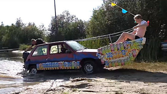 Видеоролик о создании водоплавающего Renault опубликован на канале мастерской Master Milo в YouTube. Компактный трехдверный хэтч был пожертвован проекту для экспериментов кем-то из его поклонников, и команда блогеров-самоделкиных решила научить его плавать – но при помощи максимально доступных деталей. В США установили рекорд скорости на мотоцикле, заправленном водкой На роль поддерживающих плавучесть компонентов в итоге были выбраны пустые коробки из-под соков. Правда, сам Renault 5 также претерпел кое-какие изменения. Например, чтобы снизить вес будущей амфибии, ее создатели ликвидировали почти весь интерьер хэтчбека. Кроме того, в крыше автомобиля был выпилен люк – с его помощью можно не только стоять в автомобиле, но и в случае чего эвакуироваться. Наконец, к хэтчбеку приварили подвес для лодочного мотора сзади и некое подобие бушприта спереди. Он-то и стал рамой для пакетов из-под сока в качестве поплавков. Взвесив получившееся железо и проведя некоторые расчеты, инженеры Master Milo определили число коробок сока, необходимых для поддержания плавучести, и в конечном счете их получилось около пяти сотен. Испытания амфибии показали, что Renault 5, опоясанный картонными пакетами, не только держится на воде, но и может передвигаться, удерживаясь при этом на курсе. К слову, во время испытаний на амфибии передвигались сразу трое ее создателей.