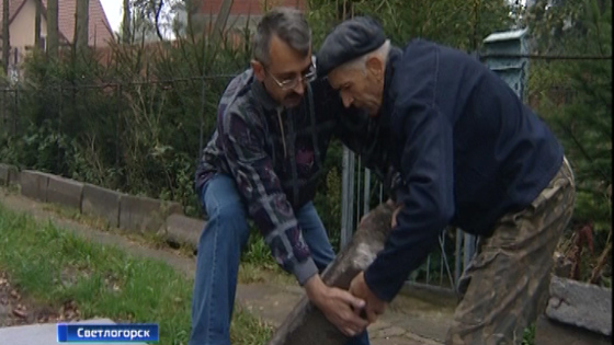 Напомним, что пенсионер на свои средства и при помощи материалов, найденных на свалке или которые ему жертвовали неравнодушные люди, за восемь лет соорудил настоящую городскую магистраль с тротуарами для пешеходов. При строительстве одного метра этой дороги в Светлогорске, было потрачено чуть больше одного рубля. Сейчас плохо видно, но энтузиасты уложили здесь старые аэродромные плиты. Материал для тротуаров вообще собирали по крупицам: что-то давали местные предприниматели, что-то удавалось получить при проведении работ в других районах города. Ну, а бордюрный камень вообще находили на свалках. Эта городская магистраль, дело рук дорожной бригады Василия Перебейноса и его сына. Вдвоём они начали войну с бездорожьем после того, как Василий Моисеевич не обнаружил в планах строительства подъезда к своему дому, во время проведения ремонтных работ на улице Пригородной. Было это восемь лет назад. Василий Перебейнос, житель Светлогорска: -Здесь была пылища столбом, когда машина едет летом здесь такая пылища поднималась, что не моего дома, ни чего другого не видно было, когда выходил на балкон у меня родился план. Надо эту улицу накрыть чем — нибудь. На строительство дороги пенсионер потратил чуть больше 200 тысяч рублей. Бывший директор детского лагеря и отставной военный, о карьере дорожника не мечтал, но на своём объекте предусмотрел даже уклоны и ливнёвки. Василий Перебейнос, житель Светлогорска: -Я отмечал эту дату везде. В частности вот она написана — 2012 год. Это значит, что на этом участке кончился один миксер раствора, и мы ждали, чтобы по нем ехать два три дня, вот это одна дата! А вот интересно, там дата 2010 год, это почему, потому, что я сначала делал тротуар, а потом дорогу! Дорога, соединяющая въезд в Светлогорск с жилыми районами города, сейчас пользуется популярностью среди водителей. Андрей Малков, водитель: -Дорога сейчас отличная, раньше пыль была, сейчас плиты положи сейчас норма отличная дорога, все бы такие были. Правильный энтузиазм, молодец мужчина, все бы проявляли инициативу и делали такие дороги. Любовь к строительству у Василия Моисеевича даже в 81 год никуда не пропала, сейчас он благоустраивает прилегающую территорию. Сам сажает и выращивает ели вдоль дороги. Планов у него много и при необходимости готов приступить к строительству нового объекта, если только попросят местные власти. Константин Морозов, Андрей Долгий