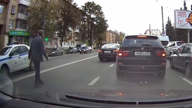 Все происходит 26 сентября на Волоколамском проспекте в городе Твери. Мужчина решил сократить путь. Не дойдя несколько метров до светофора, он начал пересекать проспект от кукольного театра на противоположную сторону. Дойдя до середины проезжей части, горе-пешеход не успевает закончить начатое. Ему встречается патруль ДПС. Полицейский громко ему объяснил, что тут ходить нельзя. И мужчине ничего не оставалось делать, как вернуться туда, откуда пришел. Видео группы "Подслушано у водителей.Тверь".