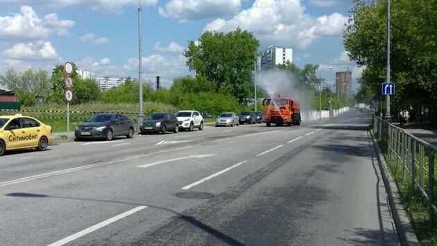 На территории района Западное Дегунино прошла очередная дезинфекция дорог и тротуаров