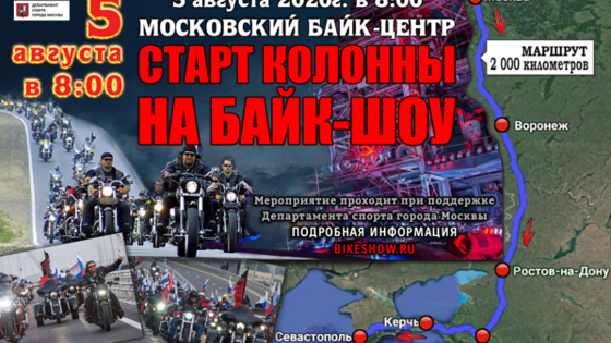 В Севастополе 8 и 9 августа состоится юбилейное байк-шоу, которое организует мотоклуб «Ночные Волки». Мероприятие, организуемое на площадке у горы Гасфорта, посвящено 75-летию Победы в Великой Отечественной войне. По словам организаторов, байк-шоу будет собой представлять трюковое, пиротехническое, музыкальное и литературное действие. Его участниками станут сотни человек. Зрители смогут увидеть движущиеся декорации, рискованные трюки мотоциклистов, а также разные движущиеся объекты, в том числе военную технику. Стартует колонна 5 августа в восемь часов утра из байк-центра, который находится в Москве на Нижние Мневники, 10. Маршрут колонны пройдет по внешней стороны МКАД до трассы «Дон». Затем она продет мимо Каширы, Венёва, Богородицска, Ефремова, Ельца, Задонска и Хлевного. После чего колонна проследует на объездную трассу возле Воронежа до съезда на трассу «Дон» в сторону Рогачевки и по новому участку платной дороги. Мотоциклисты проедут мимо Каширского, Павловска, Верхнего Мамона и до Богучара — именно здесь остановится на первую ночевку. За день пробег составит 762 км. 6 августа в восемь утра колонна направится из Богучара по трассе «Дон» в сторону Ростова-на-Дону. Отметим, что подробный маршрут движения байкеров можно узнать на сайте организаторов.