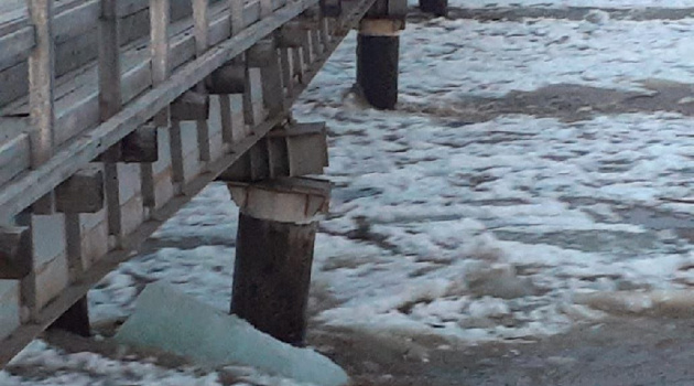 В Сети опубликовали видео, на котором льдины повредили мост через реку Селемджу