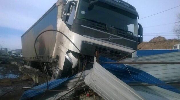 В Тольятти водитель фуры Volvo снес бетонное ограждение