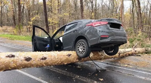В Самарской области "Хендай" чуть не перепрыгнул упавшее на дорогу дерево