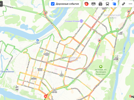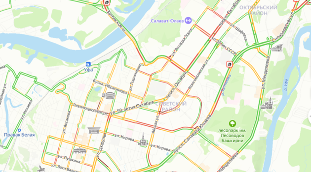 Утром 1 марта в Уфе водители снова стоят в девятибалльных пробках