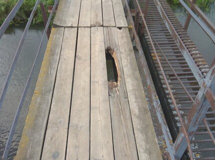 В Пролетарском районе Твери разрушается пешеходный мост через Тьмаку
